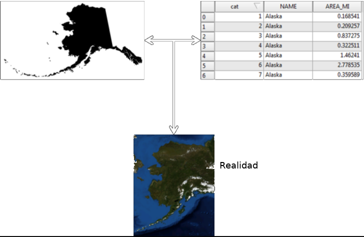 no espaciales que describen entidades espacialesDispuestos en tablas :