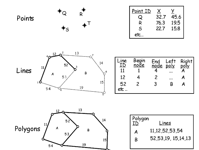 La topología expresa las relaciones espaciales entre entidades vectoriales adyacentes o conectadas (puntos, polilíneas y polígonos) en un SIG.
