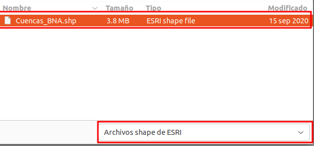 Cuencas_BNA.shpy haga clic en Abrir (consulte la figura a continuación).