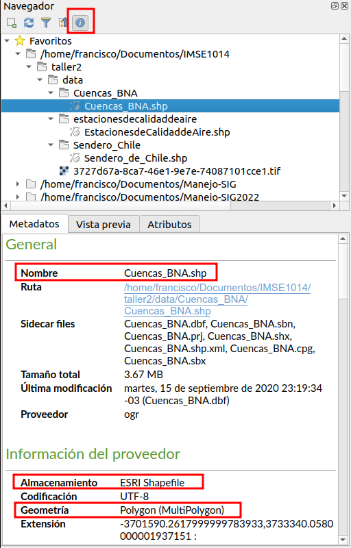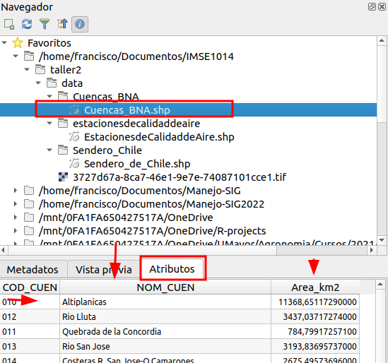 Cuencas_BNA.shpen el Árbol de archivos. Activa el control de propiedades