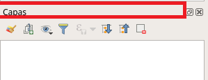 Los paneles se pueden acoplar y desacoplar desde la ventana del escritorio QGIS. Para desacoplar un panel, haga clic y arrastre la barra de título superior del panel (descrita en la figura a continuación) y arrástrelo lejos de los lados. Cuando suelte el botón del mouse, el panel estará flotando libremente.