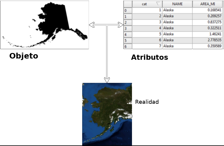 Dos partes del modelo de datos geoespaciales.