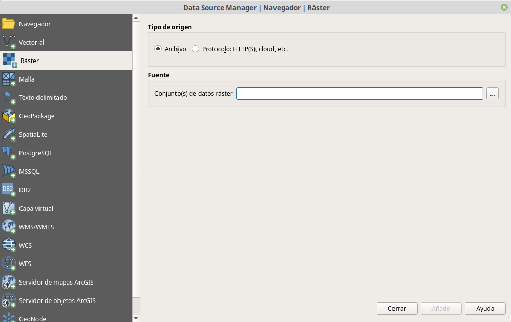 rastery entipo de fuenteseleccioneProtocolo: HTTP, cloud, etc,..En el campo al lado dónde dice