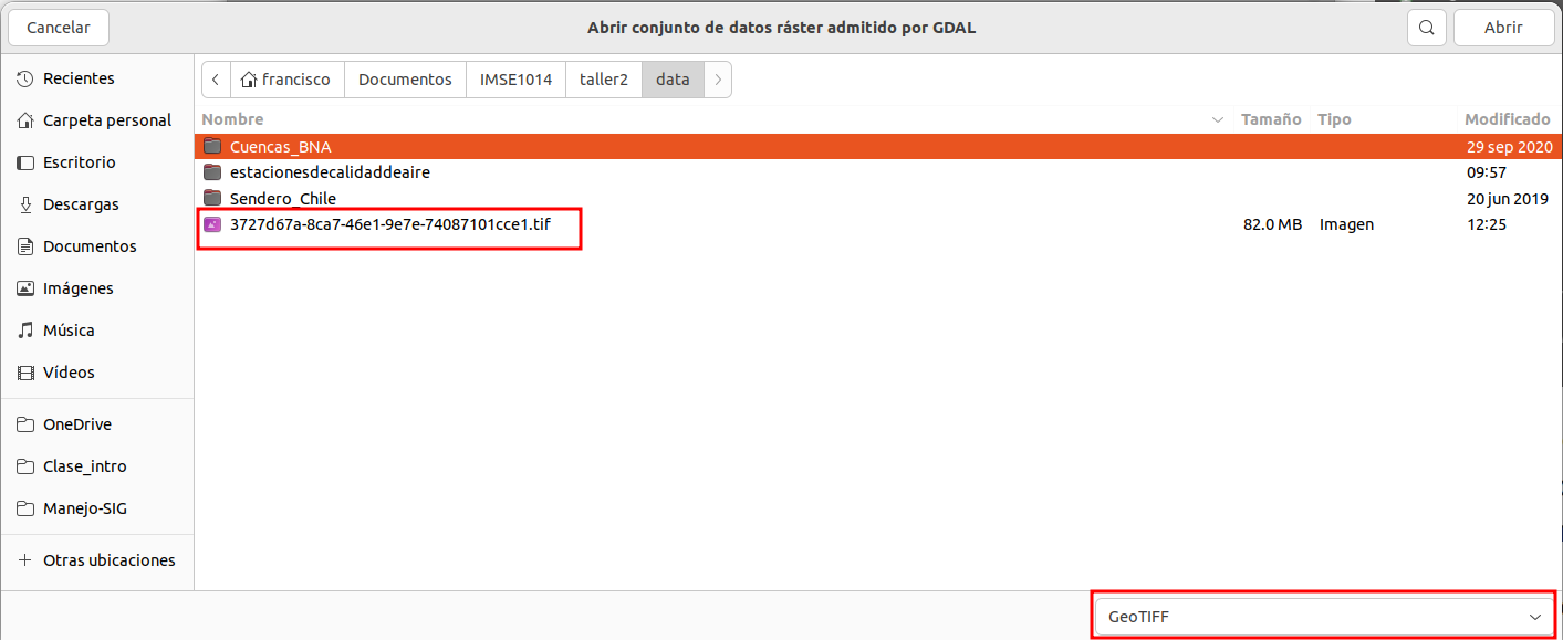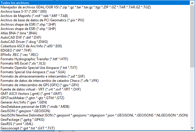 GDAL/OGRpara abrir archivos de tipo vectoriales y también raster.El filtro de datos ráster de la ventana está configurado para