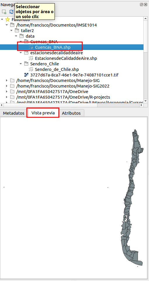 Con el navegador de QGIS explore el archvio de tipo