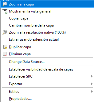 Un clic derecho sobre una capa mostrará un menú con muchas opciones extra. ¡Pronto estará usando algunas de ellas, así que écheles un vistazo!