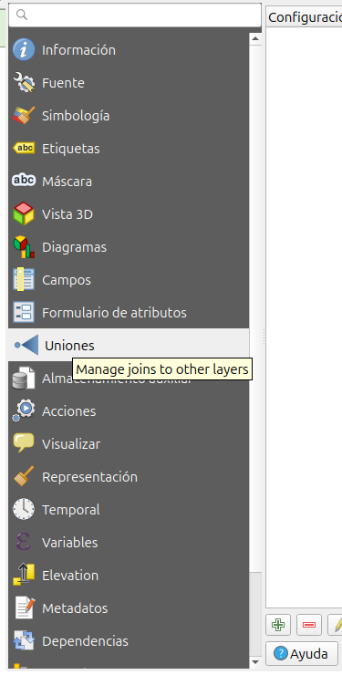 Aceptar. Con esto tenemos realizada una unión que se mantendra activa, mientras estemos en la sesión de QGIS. Si queremos que la unión sea permanente debemos guardar la capa con la nueva unión. Pero antes haremos algunos cambios.