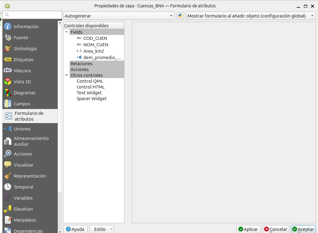 cuenca_BNA. Vamos a seleccionar la pestañaFormulario de atributos.