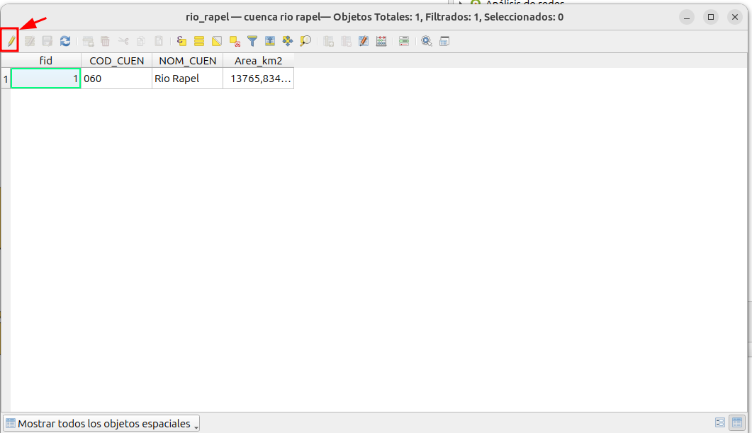 - En la tabla de atributos, haga clic en el icono de “conmutar el modo edición”