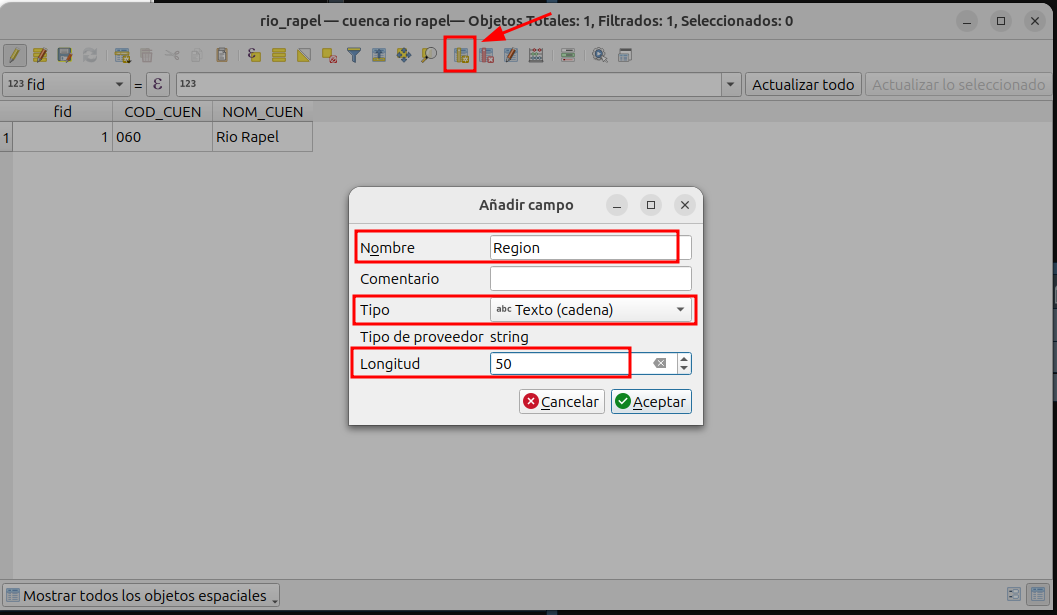 Podemos ver que en la tabla de atributos ahora se encuentra el campo