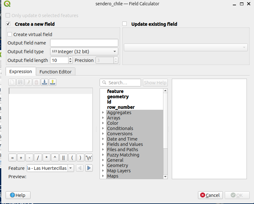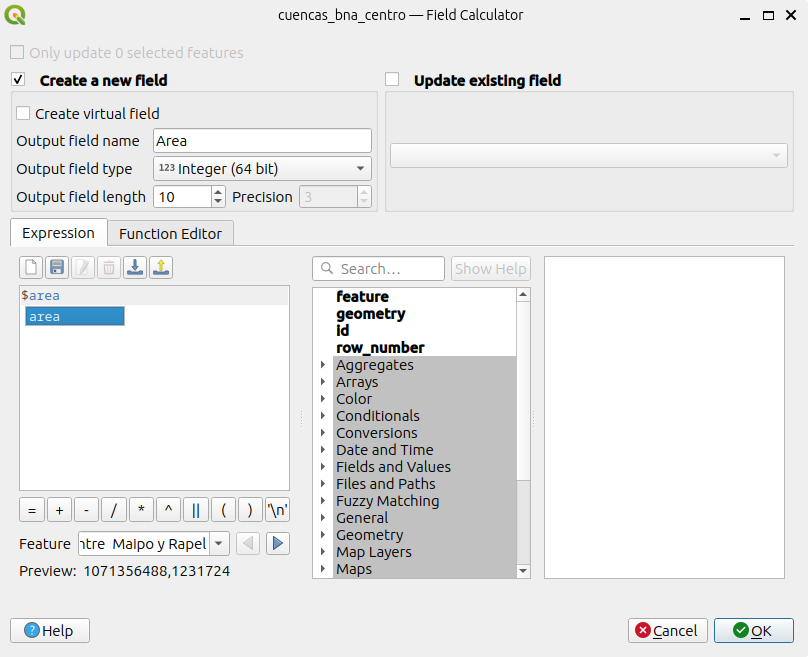 - De la funciones que tiene la “Calculadora de campos” debe seleccionar