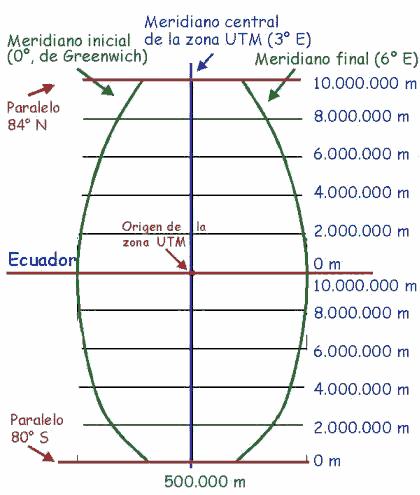 Divide la tierra en zonas de 6° de ancho y se extiende desde 80°S a 84°N.