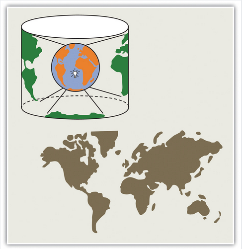 Todos los mapas proyectados distorsionan la forma, área, dirección y distancia.
