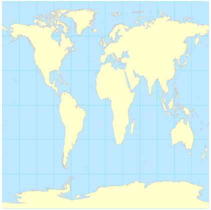 Todas las proyecciones tienen alteración de área, forma, distancia y dirección en una proyección geográfica.