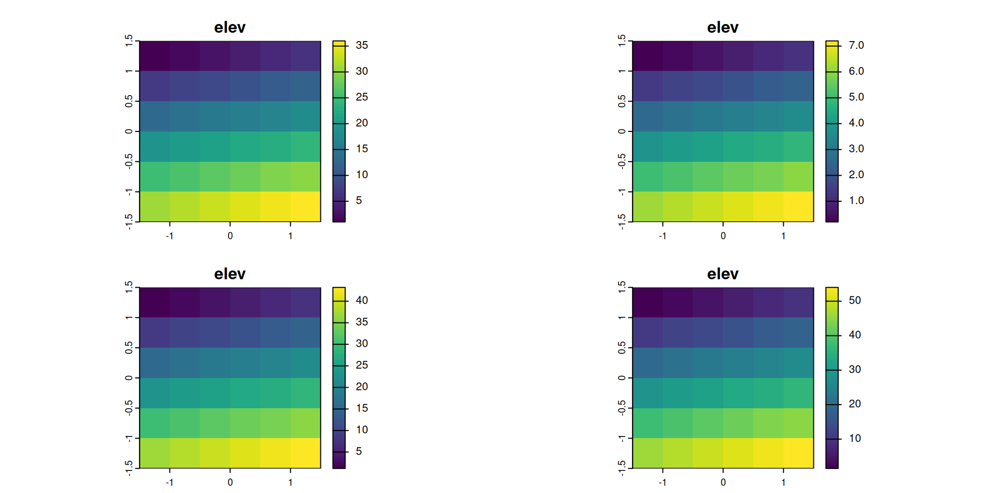elev4 <- c (elev, elev* 0.2 , elev* 1.2 ,elev* 1.5 ) #raster con 4 capas