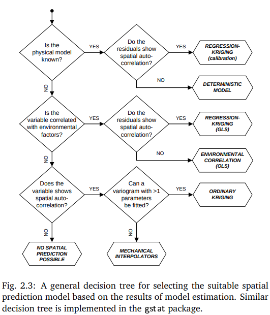 Los modelos de predicción espacial se basan en la autocorrelación espacial y utilizan el modelo de variograma para el cálculo de la covarianza espacial.