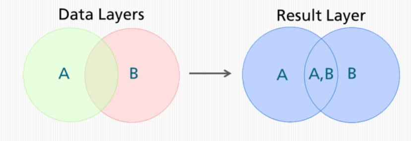 Consideran la combinación de datos y atributos espaciales de dos o más capas espaciales.