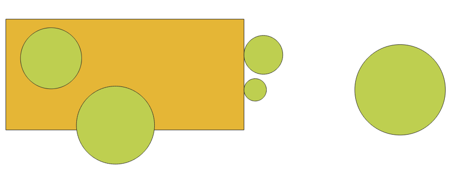 Están dentro: Comprueba si una geometría está dentro de otra. Devuelve 1 (verdadero) si la geometría a está completamente dentro de la geometría b.